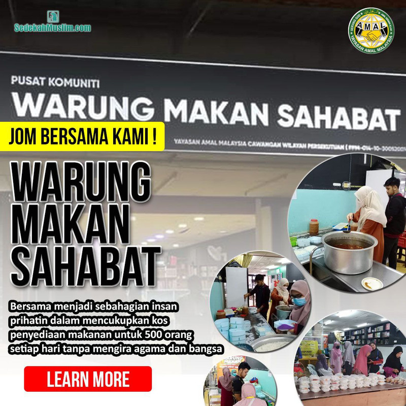 Kongsi rezeki bersama kami agar WARUNG MAKAN SAHABAT dapat beroperasi setiap hari tanpa ada saudara kita di sekitar Chow Kit menahan lapar semalaman.